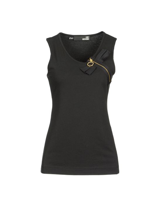LOVE MOSCHINO Футболка без рукавов джерси, стрейч, одноцветное изделие, закруглённый отложной воротник, без рукавов, застежка спереди, молния, без карманов, бант